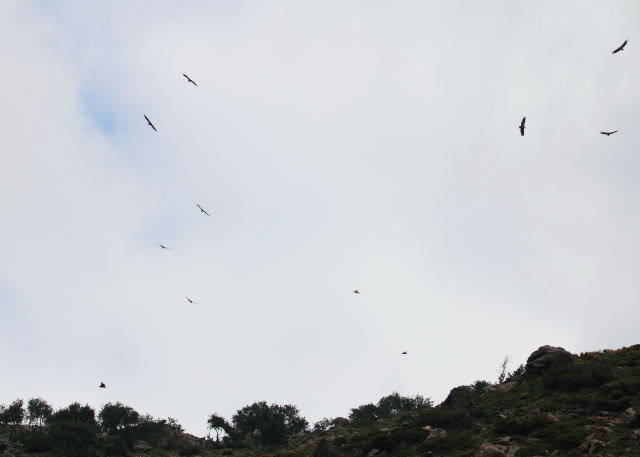 Griffon Vultures were here along with Crag Martins in the Gorge along with a large colony of Jackdaws and several Buzzards and Kestrels, a Turtle Dove was heard in the valley.