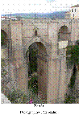 At Ronda village we parked in the tourist car park and joined the masses as they walked to the bridge here we saw red-billed choughs, lesser kestrels, alpine swifts, blue rock thrush and crag martins flying around the valley and through the bridge itself. |