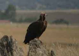 May 24th – We drove straight from Monroy to Trujillo and then onwards to Belen steppes after an early breakfast. After initial problems with finding the right road to drive out through Belen village, we eventually got out into the steppe area and almost immediately found a group of sixteen Great Bustards loafing not far from the road. A further group of five were also seen from the same vantage point, and with a single in flight over the car further down the road, it gave us a respectable 22 for the day. Twelve Little Bustards were also noted, though with greater difficulty given the relative size of the birds and length of grass. One Black Vulture perched on a stone close to the road was too good a photographic opportunity to miss out on, but the major surprise was not seeing a single Montagu’s Harrier in an area we had seen several in 2002.