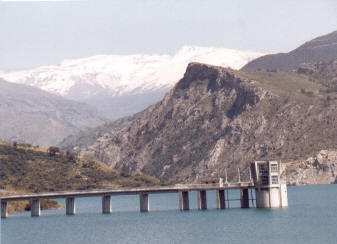 Back down this road, near the bottom, you begin to see a large Reservoir. You have to take a road to your right just before you rejoin the main road to Grenada. Follow the signs for Guejja-sierra. We didn't see too much here but it has potential as this reservoir has just been built. But what scenery with the snow clad peaks as backdrop to a beautiful blue water. A few photos were taken here. We heard quite a few European Bee-eaters here but we couldn't find them. Birds added to our list here were, Blackcap and Fan-tailed Warbler. A few Swallow were flying around as well. |