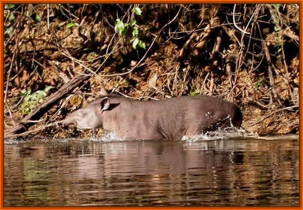 In the early morning I had taken clients around the Serra Trail following which they kayaked back to the lodge and I walked back down the Cacao Trail to the riverbank opposite the Lodge. It was mid-morning , quite hot and, in general, bird activity was low. However about 600-900 metres from the end of the trail I encountered an antswarm some 15 metres off the trail. There was considerable activity and the swarm was attended by 4-5 Black-spotted Bare-eye, 7-8 Bare-eyed Antbird, Scale-backed Antbird, White-backed Fire-eye, Plain-brown and Black-banded Woodcreeper. Curve-billed Scythebill and Emelia’s Antwren were also seen.