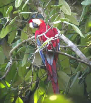 Closer examination revealed the head, neck and mantle to be dark blue in colour, wings also deep dark blue shading to purplish black on the flight feathers. It had a dark shaggy crest which it raised and lowered regularly much in the manner of the Bare-eyed Antbirds close by. The eye appeared red with paler blue orbital skin contrasting with the dark blue of the head. The overall impression of the underparts were of a lightish buffy base; the throat and upper breast were scaled grey bounded by a broad but possibly incomplete black band across the upper breast. The vent was red but appeared to cover a smaller area than suggested by some illustrations.. The tail was greenish purple. The bird was observed for between 5-10 minutes. It was not seen to walk on the forest floor but remained on its low perch cocking its head back and forth, constantly raising and lowering its crest. Occasionally the bird would dart a short distance from its perch to grab some fleeing prey item, the manner of its movement again remarkably similar to the ant-birds with which it was associating. It was not heard to bill clap while in view.