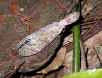 The swarm moved slowly towards the trail where I was standing and after watching for about 10 minutes I was suddenly aware of a large bird flying in to my left which perched momentarily on a partly obscured branch 5 metres above the ground before flying into cover further from the trail. I had only an impression of a large ivory bill and a dark blue back but little sense of shape. Shortly afterwards I heard the sound of what I know now to be bill clapping coming from the cover into which the bird had flown.