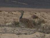 Montana Roja: This is a red coloured volcanic mountain and crater located behind our hotel. Walks around the base turned up Berthelot's Pipit and Black Redstart. At the north-east corner of the road around the montana is a water treatment works surrounded by palms. Whilst this looks like a promising oasis we only saw Great Grey Shrike here. There are roads and tracks through the volcanic scrub between the montana and the coast. We had just passed the works on one of our circuits when a Houbara Bustard walked over the road in front of our car giving stunningly unexpected views. On another circuit Houbara Bustard was again seen at the same point.