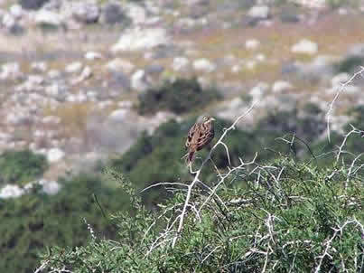 Cretzschmar's Bunting Emberiza caesia (4/14) Two at Cape Greco on 7th; two at Cape Greco and two Asprokemnos Dam on 10th; one at Cape Greco and four at Ayia Napa Sewerage Works on 14th. two at Cape Greco on 16th.