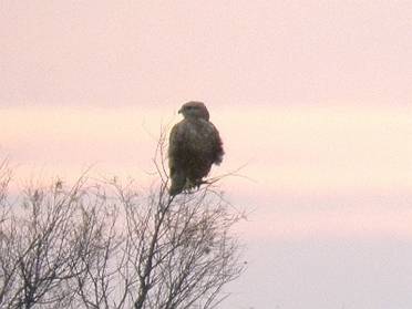 The wintering Long Legged Buzzard is usually easy to locate as it favours a bush looking south west from the platform.