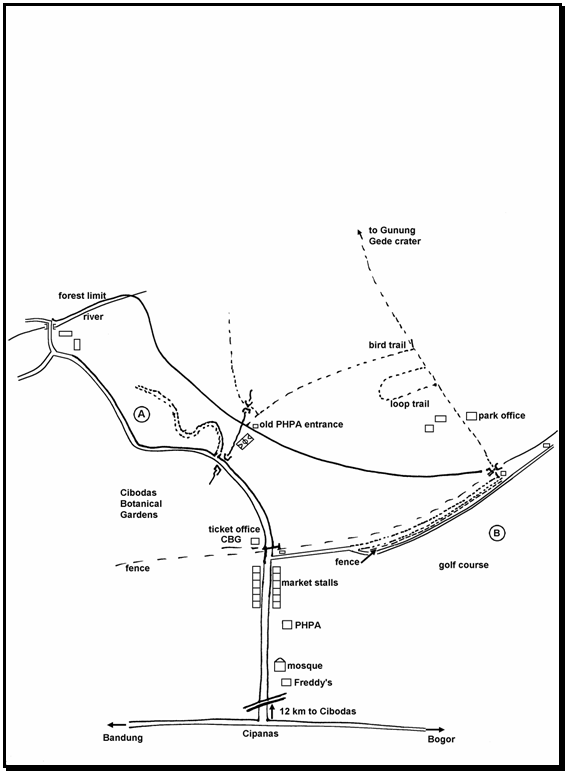 Rough map of Gunung Gede/Cibodas Botanical Gardens/Golf course (back)