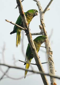 Olive-throated Parakeet (Aratinga nana). This is sometimes split off as the endemic Jamaican Parakeet. Commonly encountered in forest areas, the Blue Mountains, Dunn’s River falls, Barbecue Bottom Road and Cranbrook forest.
