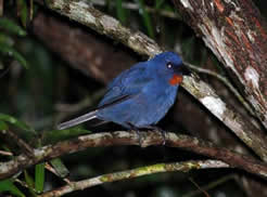 The next hour before first light I spent trying for Jamaican Owl again but to no avail. As dawn broke I started searching along the forest track until I found a fruiting tree with pigeons visiting. There were several White-crowned as well as many White-winged Doves and on the ground a couple of Ruddy Quail Doves and even a pair of Caribbean Doves. However, thinking that a fruiting tree might bring in something else I searched carefully through the branches but found nothing out of the ordinary. Playing my short section of Jamaican Becard tape though brought in a chunky back bird directly overhead. A pristine black male! It did not call but hopped around above my head feeding every now and then. Although uniform black it was really quite a smart bird. I was absolutely amazed. I had actually managed to see all the endemics plus most of the other specials. I had hoped to do so, but had resigned myself to missing a few several days ago. Well pleased with my views of my last two ticks I decided to wander back to try and get some photos of those species I had so far missed. There were some dead trees next to the track that, when I had visited before, had seemed popular with Woodpeckers and Stripe-headed Tanagers. So the next hour or so I spent getting a few more photos before heading back for breakfast with the family.