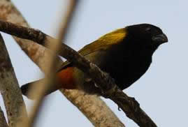 Jamaican Euphonia E (Euphonia jamaica) seen in the lower parts of the Blue Mountains, Barbecue Bottom road and Cranbrook forest where fairly common.