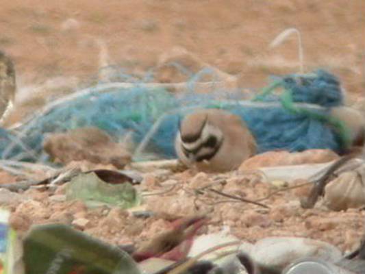 The tip was covered in birds. The first bird I put my binoculars on was a Thick-billed Lark. I watched it for 6 seconds then panned to my left and saw a Temminck’s Lark and I watched it also for 6 seconds. Then I decided to get the scope set up and get some pictures of these beautiful Larks. By the time I got the scope set up the Thick-billed Lark had vanished but the Temmincks Lark was joined by another, so I managed to get a record shot of it.