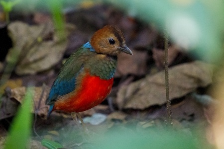 Red-bellied Pitta 1 bird ME in the same dark primary forest area as the Ashy Thrush