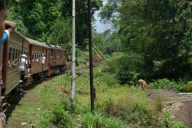At first light, sat on the balcony and watched the figtree and the trees of the canopy of the Udawattakelle Sanctuary rainforest opposite. There was a huge swarm of huge bees in a tree opposite which apart from one that came into the dining area did not bother us. Soon discovered a stealthy Lesser Hill Myna in the fig tree with yellow bill and double head wattles and more flew over later. The same tree attacted another Sri Lankan Crimson-backed Flameback, another Grey Tit and an exceedingly noisy Tailor Bird which hurt the ear with it’s volume! Good views of another Sri Lanka Small Barbet in the canopy opposite and more day glow Orange Minivets and Common Iorae. A single Munia was brown backed and lacked a white rumped and thus became a Tricoloured or Black-headed Munia. In the garden above was yet another lucionensis Brown Shrike and a Crested Serpent Eagle flew overhead. We were joined on the balcony by a troupe of Torque Macaques which was a little intimidating but I ignored them and they left me alone, Ros having escaped to the dining room. After an excellent breakfast we walked down to the Lake where another gang of Macaques were begging food and caught a tuc tuc to the station and travelled second class this time for £1.10 each to Colombo which was more comfortable and roomy than 3rd. More Indian Swiflets and House Swifts were seen from the train. Back in Colombo Fort station had a bottle of Elephant House EGB ginger beer and watched the pelicans, Brahminy Kites and White–bellied Sea Eagles overhead and the gang of House Crows as a thunder storm approached and then deluged the station with a piece of the canopy blowing off! A very packed express train back to Aluthgama, with standing room only. The whole trip cost us £46 all in, which is much cheaper than the Holiday reps and the tuc tuc and taxi drivers’ quotes and very worthwhile!