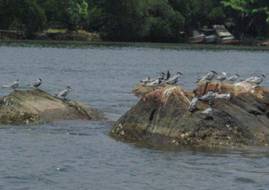 20. White-bellied Sea-eagle Haliaeetus leucogaster. Seen sitting on the rocks off Hotel Serendib, Bentota, 2.iv.2011 and most days; 1 adult over Aluthgama 3.iv.2011; 1 adult over Colombo Fort Railway Station, 12.iv.2011.